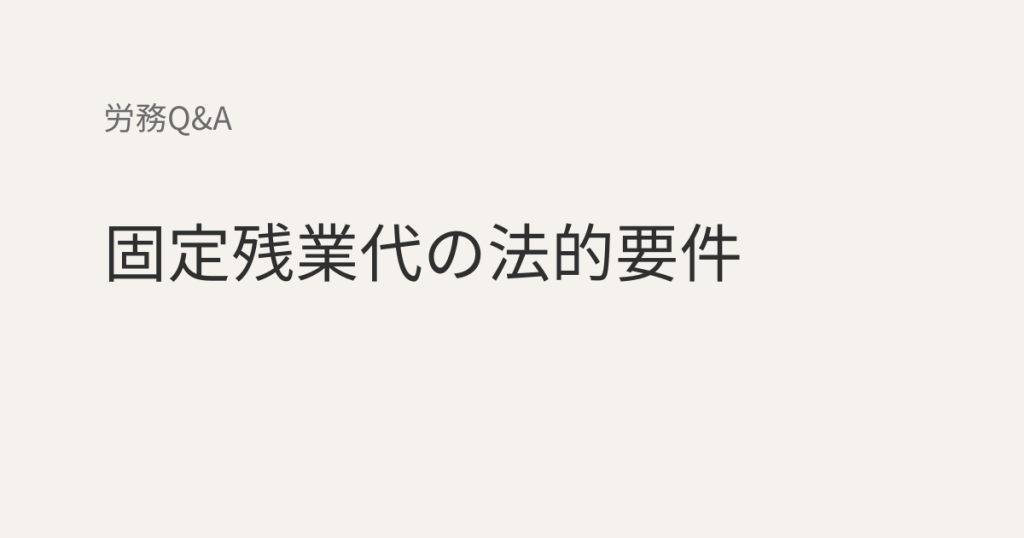 ▶ 固定残業代は、要件を満たしていない場合、制度そのものが無効と判断されることがあります。 その場合、過去にさかのぼって未払い残業代を請求されるリスクがあり...
